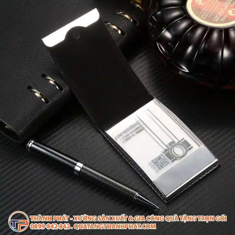 Quà tặng kết hợp với hộp đựng namecard bc07 PU đen vân sọc